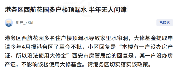 但房子基本都是多层步梯,房龄已经20多年,小区年久失修,因为房产证没办理完,也无法缴纳专项维修基金进行维修,不少顶楼都存在漏雨的情况。