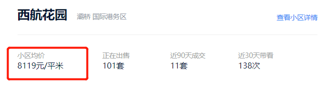 贝壳网数据显示,西航花园目前二手房均价8199元/㎡。