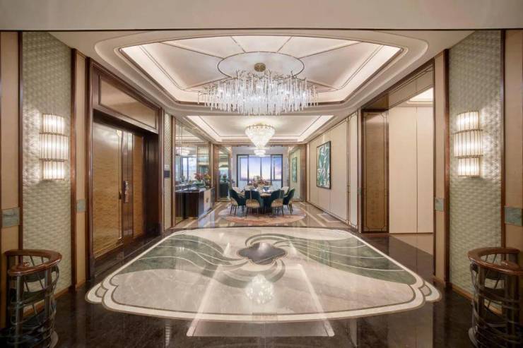星河湾独创星中式美学,臻选原生奢材,集萃阿玛尼棕大理石、纪梵希灰大理石、太古青金大理石、梦幻绿奢石等数十种名贵石材,并以星河湾4.0标准的至高营造准则精细打磨。