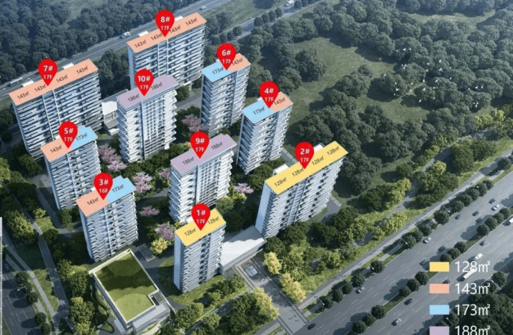 3栋小高层,户型建面多为139-144㎡的四室户型,备案均价约1.9万元/㎡。