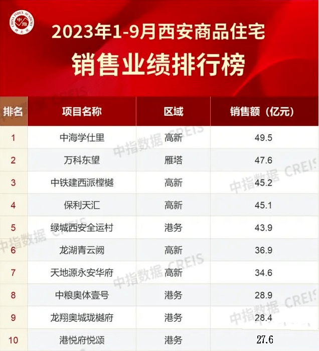 根据中指院最新发布的《2023年1-9月西安商品住宅单盘销售额TOP10排行榜》显示,港务区的项目就占据着4个席位!