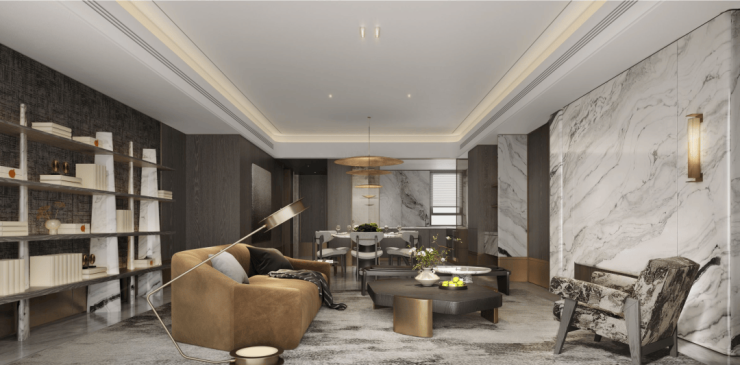 客厅、餐厅、厨房、阳台一体化设计,空间无界融合,盛放家庭欢聚时光。