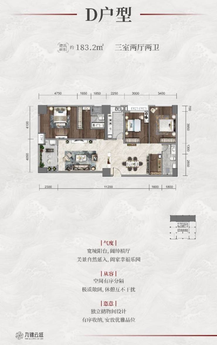 主力户型建面为92-183㎡共计4个户型。