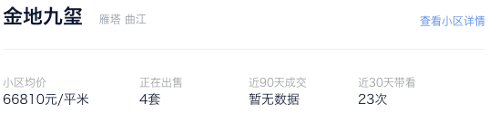 各区域一些高端改善豪宅,高昂的总价对于买房人的实力要求很高,而能负担得起的富豪,眼光又无比挑剔,比如金地九玺(66810元/㎡)。
