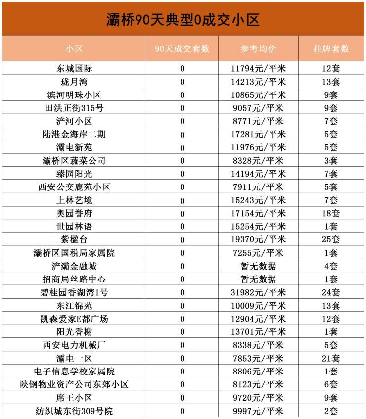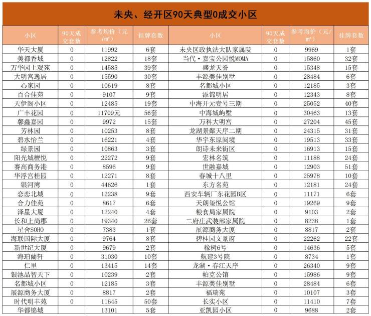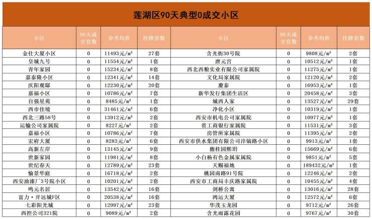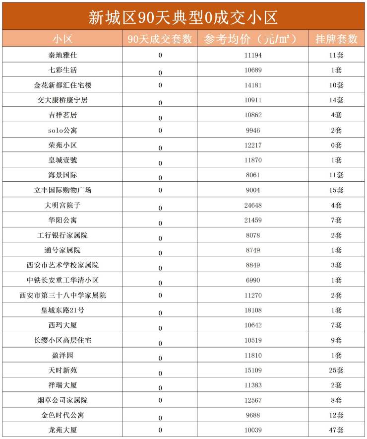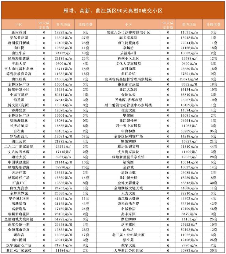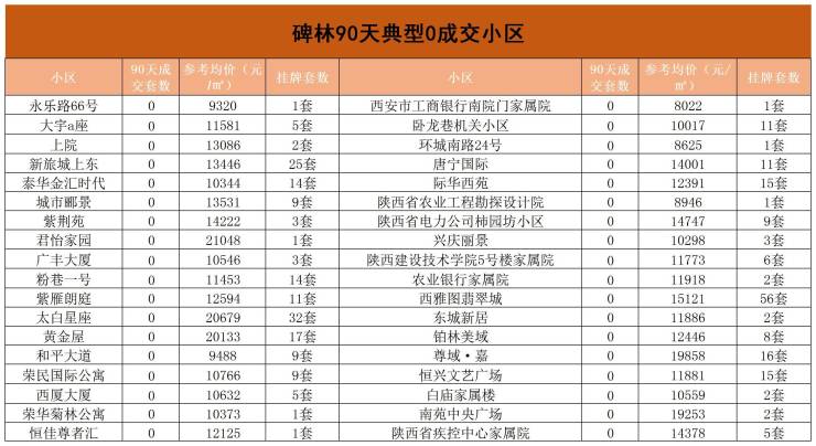 为了让大家了解真实的二手房市场情况,我们也统计了西安90天0成交的小区,具体详情往下看。