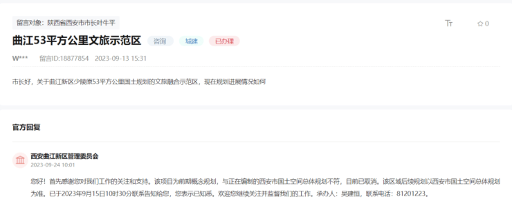 关于曲江三期,最近的官方回复又给盖了章。