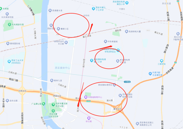 而目前的灞渭大道南起杏园立交,北至秦汉大道,与西航花园隔路相望,与林翠路实际并不相交。所以按照官方的称呼来看,灞渭大道似乎有可能向北延伸。