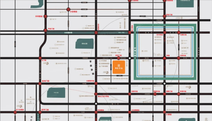 商业:项目立足西门商圈、紧邻钟楼商圈,商业繁华。向西出发300米,即可到达西门开元商城,向东约650米有大型商超人人乐,向南约2公里有大型综合体大唐西市,不论是日常就近补充生活用品,还是周末吃喝玩购物,都可以轻松满足。