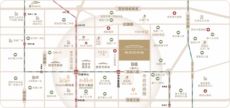 西安市中医医院、西安市第三医院、西安国际儿童医院(在建)等优质医疗资源环伺,护守身心修为。