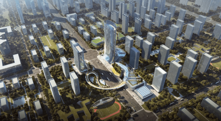 中国铁建·西派城项目总占地约65亩,分天华和天麟两个地块,共计约808户。以下为项目鸟瞰图: