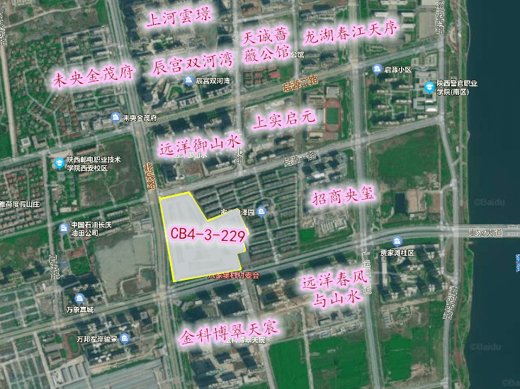 地籍标号为CB4-3-229地块占地109.8亩,容积率2.4,地块位于秦汉大道以北、北辰大道以东,为原来的八家堡村所在地,具体在金科博翠天宸项目以北,远洋御山水以南。