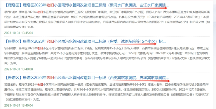 近期,西安一些老旧小区的招标计划也陆续发布,涉及雁塔区、新城区、未央区等多个区域。