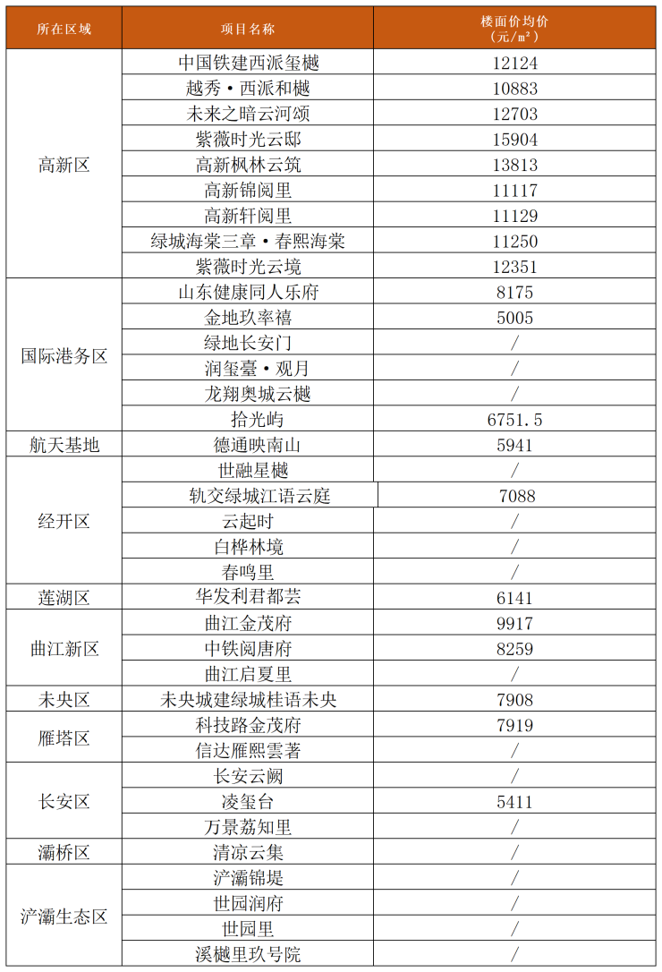 品牌之外再回到价格来看,目前除了高新区待推的纯新盘楼面价已经全部过万之外,其余几个区域暂未有万元楼面价地块公示项目案名或信息,但对于想要置业港务区的朋友来说,重点需要关注的是国际港务区后续新盘价格变化。