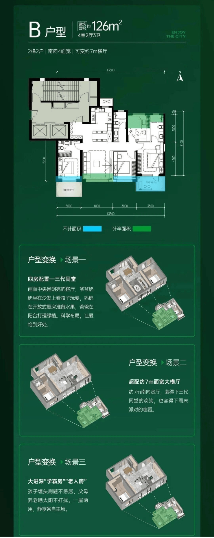 建筑面积约:108㎡、126㎡、139㎡2T2四代宅