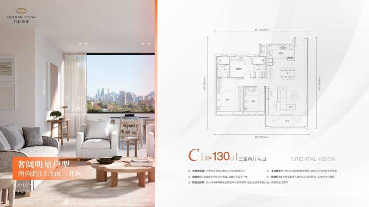 奢阔明星户型/南向约11.9m三开间