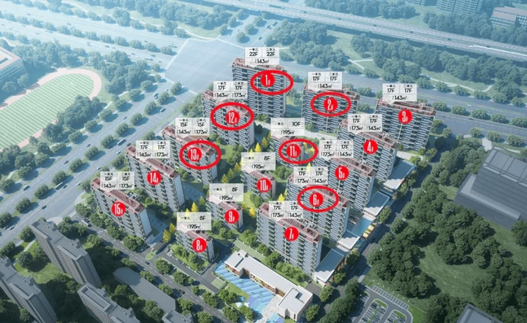 6#楼,为层高17层的小高层产品,共68套房源,楼幢均价约20968元/㎡,面积区间约142-173㎡;