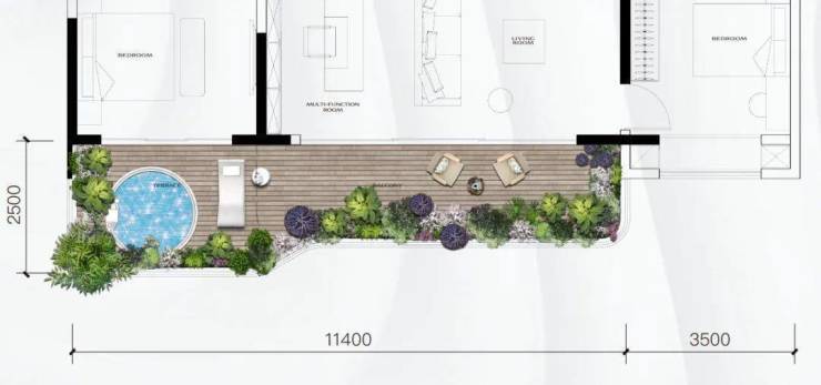 悬浮花园,犹如悬浮于天地之间的私享花园,在建面约126㎡的户型上展现出远超预期的惊喜感。
