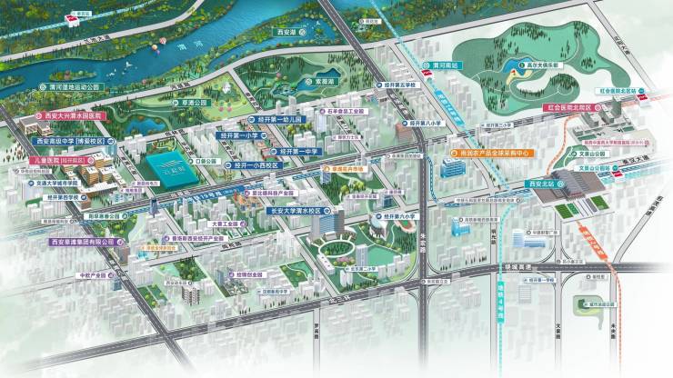 公园:比邻渭河,近享约1500亩西安湖、约200亩紫薇湖,渭河城市运动公园、文景山公园、草滩公园、阳早寒春公园等多个自然生态公园在侧,鲜氧生活举步即达。