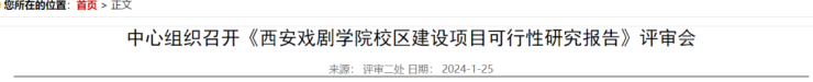 来自陕西省政府投资评审中心官网的新闻报道显示:2024年1月25日,受陕西省发展改革委委托,中心于近期开展了《西安戏剧学院校区建设项目可行性研究报告》(以下简称《可研报告》)评审工作。