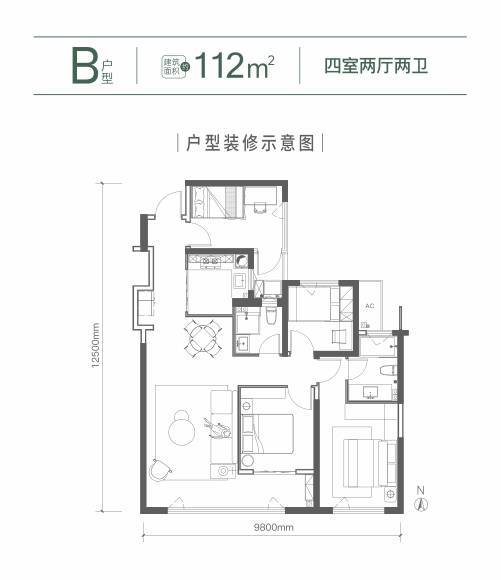 建筑面积约112㎡ 四室两厅两卫