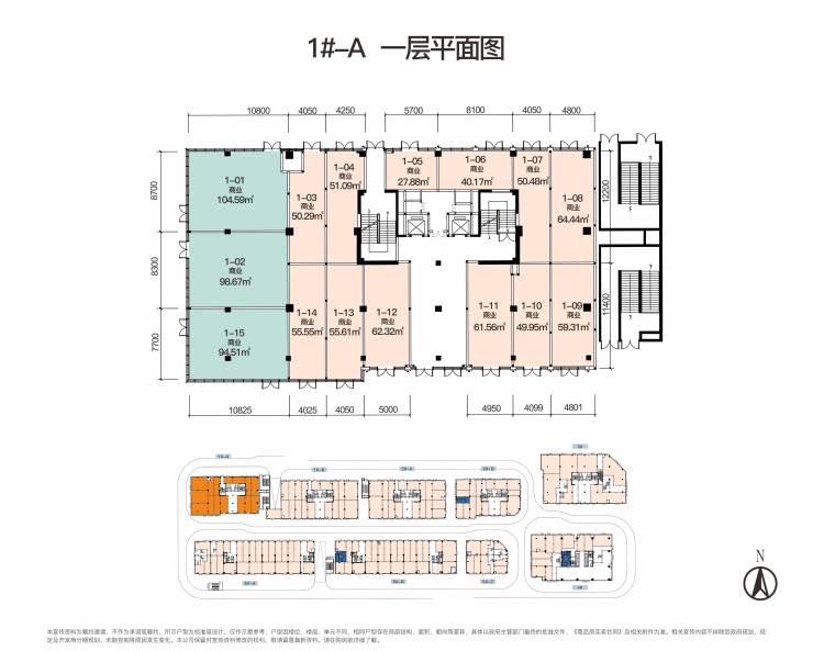 建⾯约20-80㎡商铺(1个)