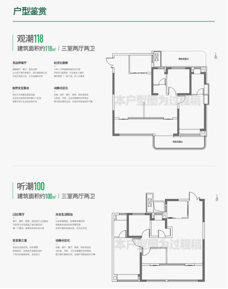 主力户型 |听潮建面约100㎡、观潮建面约118㎡