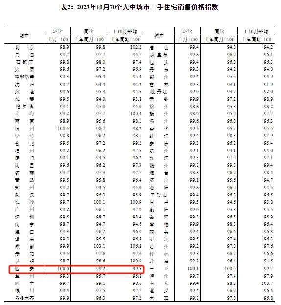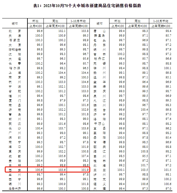 与此同时,今天统计局发布了《2023年10月份70大中城市商品住宅销售价格变动情况》。