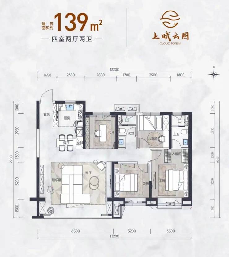 建面约139㎡户型,大横厅+四室规划,简直是二胎家庭的“理想家”……