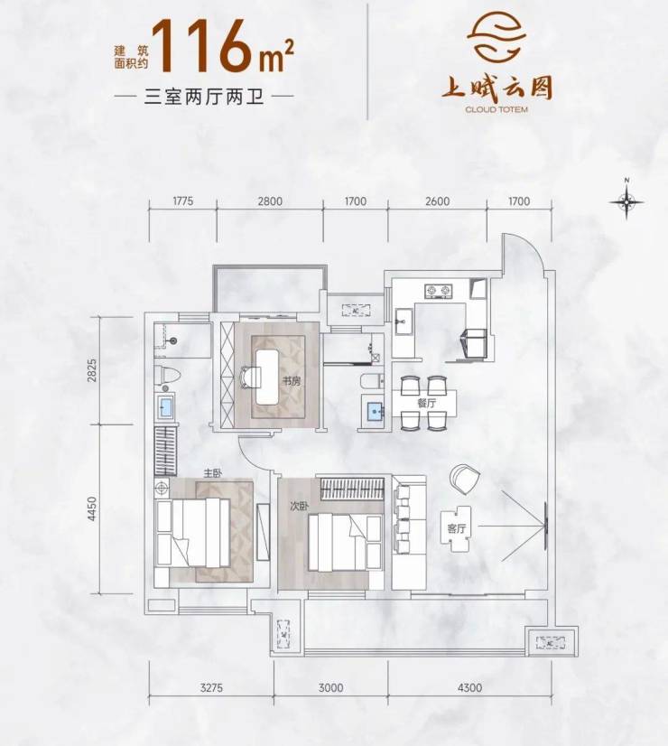 更难得的是,南飞鸿·上赋云图还将100㎡打造成三室两厅两卫的户型格局,多了一个卫生间多了一份从容。