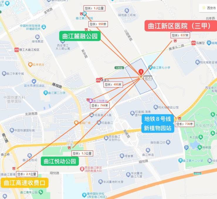 医疗:医院西北妇女儿童医院、曲江妇产医院、曲江医院、武警医院、西安市第九医院、铁一局医院、西京医院;