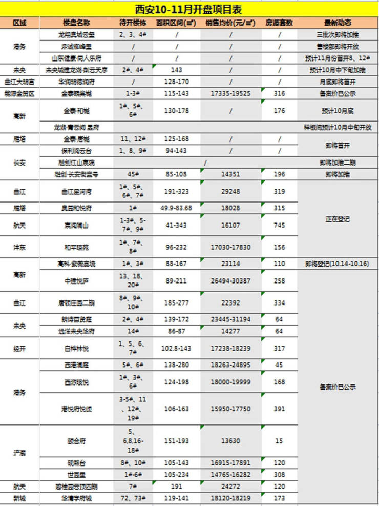 西安10月-11月开盘项目一览表!30+项目盘即将加推!