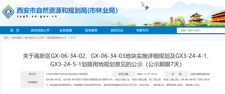 GX-06-34-02、GX-06-34-03位于西安市高新区GX-06单元内,科技八路以北,科技七路以南,西三环以东,化龙三路以西。宗地具体指标如下: