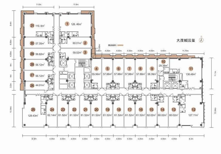 面积区间:55-152㎡精装旺铺,最大组合面积500平米