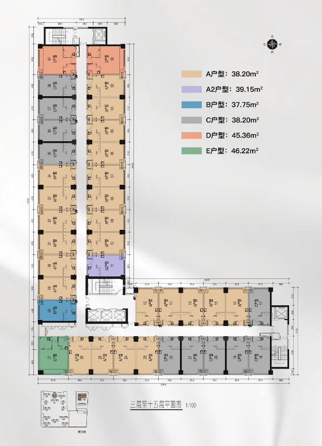 双拼(38+38㎡):公寓自住大平层产品:君启精品70平米小面积产品,转为都市精英年轻白领人群打造。