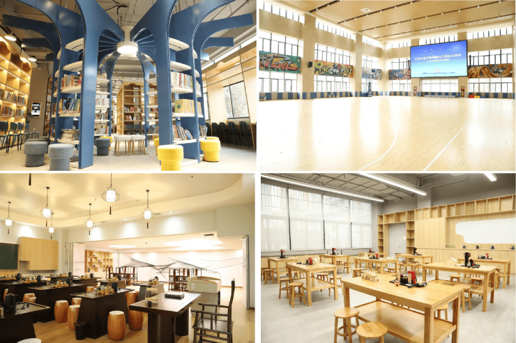 校内设有:科学实验室、云机房、美术教室、茶艺教室、陶艺教室、智慧书法教室、舞蹈厅、音乐教室、合唱厅、管乐厅及民乐厅等。