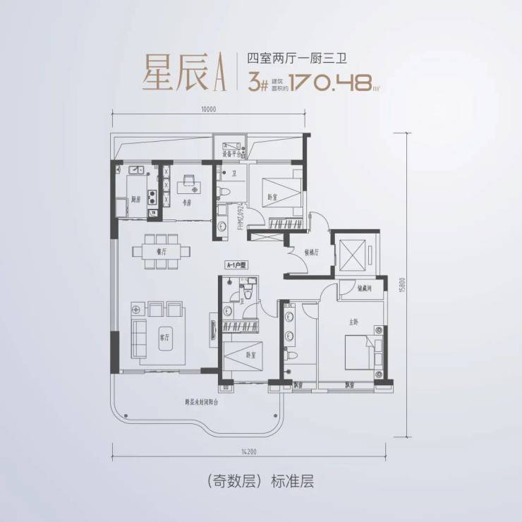 其二,游艇风曲线天空院:世融·星樾采用两种产品设计方案,一种是宽屏瞰景的三居室设计,满足初改家庭需求,建面约120㎡、130㎡精品改善;另外一种是游艇风“天空院”,规划四居室大宅,建面约140-170㎡大平层。