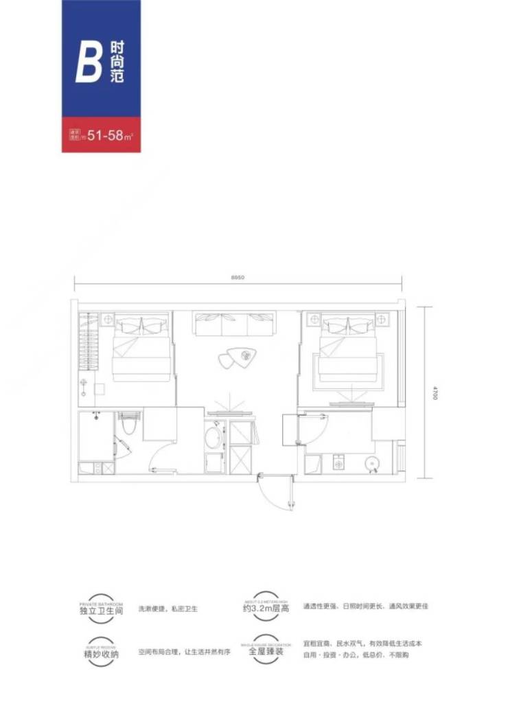 楼层分布:首层为沿街商业、2-7层为平层精装公寓、8-21层为LOFT公寓