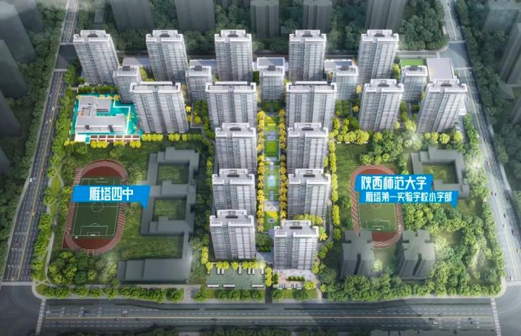 陕建雁南朗境,一期占地约127亩左右,容积率2.8,规划高层和小高层。项目比较吸睛的一点是,除了自带的幼儿园,在社区南门口还有陕西师范大学雁塔第一实验学校小学部和雁塔第四中学。