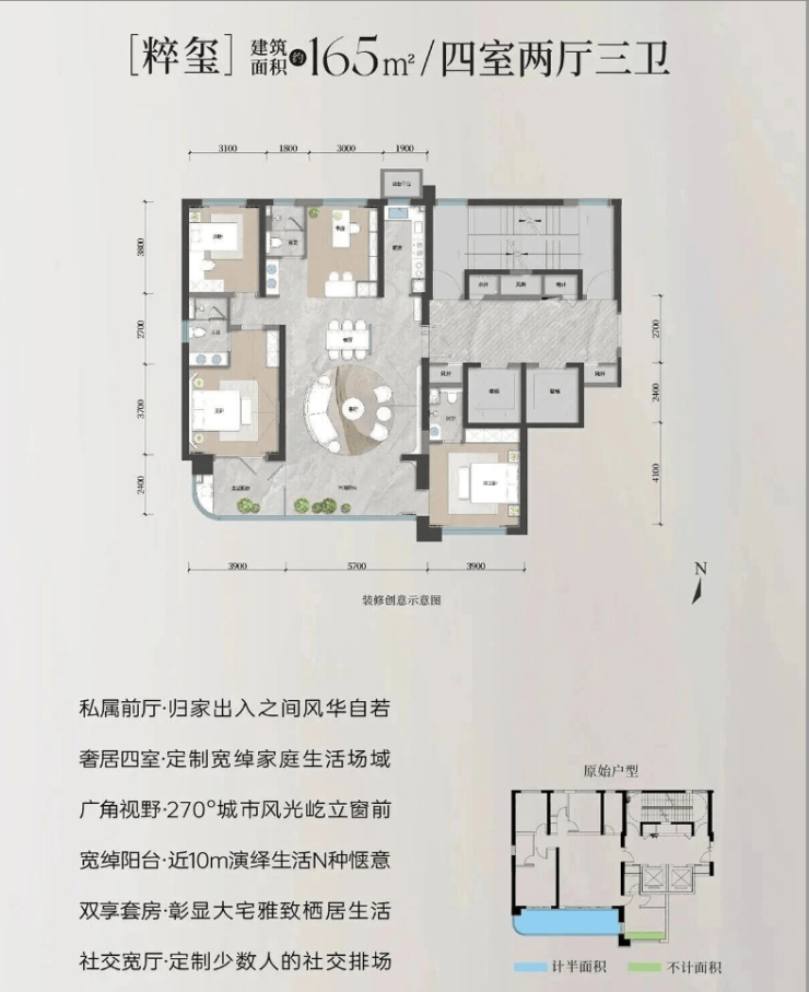 望玺建筑面积约:163m²/四室两厅三卫