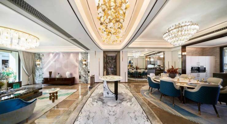星河湾独创星中式美学,臻选原生奢材,集萃阿玛尼棕大理石、纪梵希灰大理石、太古青金大理石、梦幻绿奢石等数十种名贵石材,并以星河湾4.0标准的至高营造准则精细打磨。