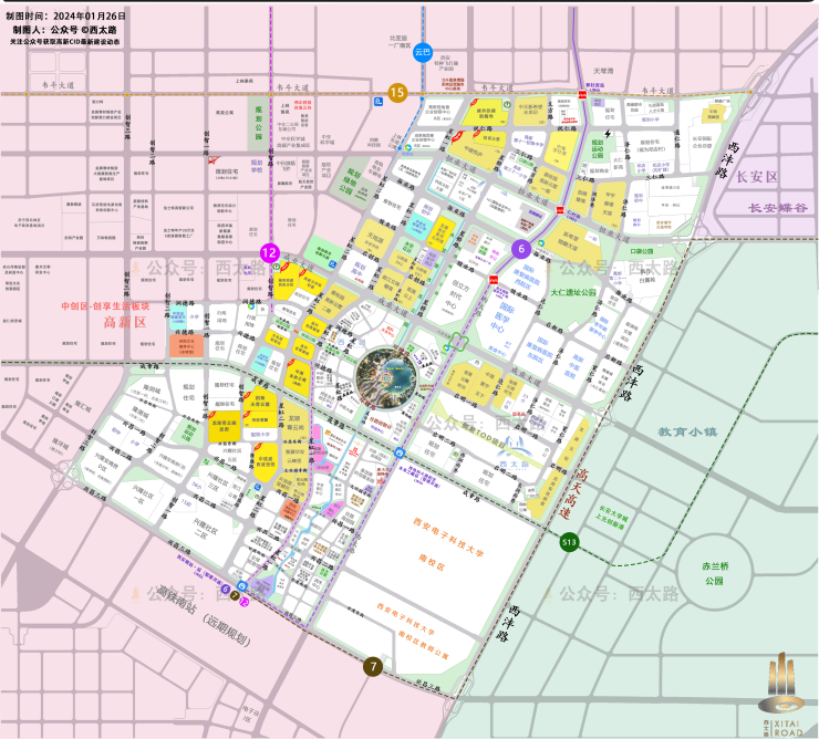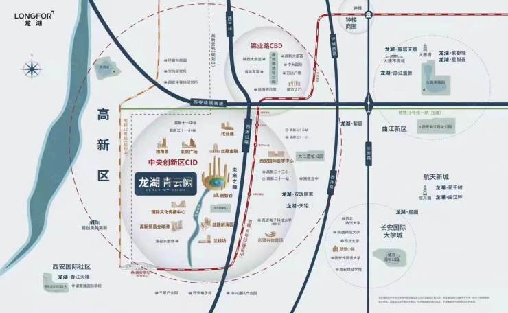 1. 交通东侧毗邻的地铁6号线;西侧规划地铁16号线(一期计划2023年6月建成)、12号线(计划四期上报)、云轨1号、23号(规划2022年)等路线; 位于项目南侧的是新西安南站(长安中心),共13台26线,包含西渝场、西武场、西成场、西长场与城际场,站房面积预计15万平方米,是未来的重要的交通枢纽。