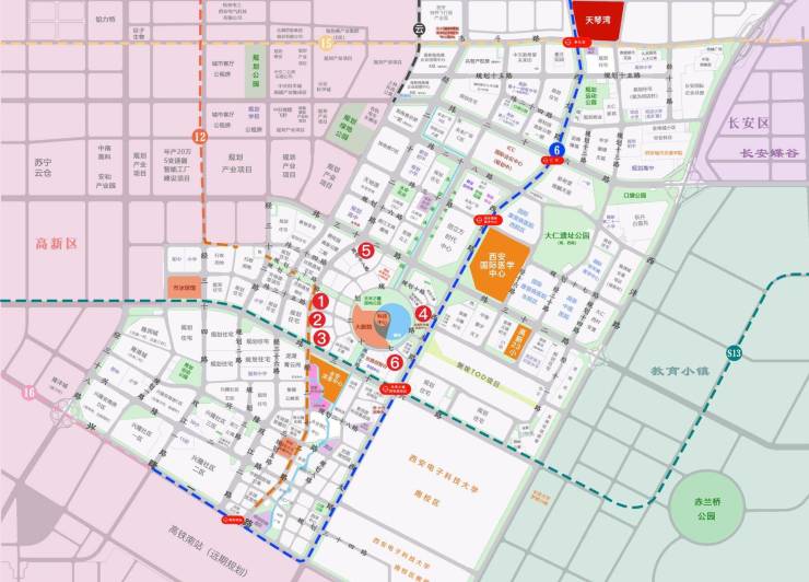 天琴湾与西安高新管委会未来新址仅2公里,是西安重点发展区域的三圈交汇之处,文教商业医疗资源一应俱全,双地铁在此换乘,伴随着高新区的发展的大机遇,不断提升和改善人类居住环境与生活质量,大城之上,挥就无限前景。