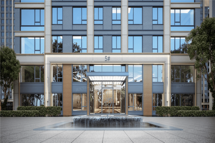 项目效果图,可以看到整体建筑主色调,大门充满科技感,通体设计大面积的玻璃外墙,放眼整个片区内,绝对是地标级的存在。