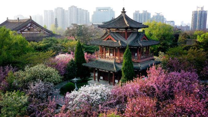 享青龙寺遗址公园/兴庆公园/大唐芙蓉园/曲江池/雁鸣湖等城市生态、休闲配套,向前是城市霓虹与时尚摩登,背后是都心静谧与高山流水,如此集中的公园区,无论是西部还是西安,都属于独有。