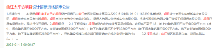 其中,位于曲江新区的太平坊项目,虽然是一个酒店+商业项目,但由于其所处的位置属于曲江核心,因此备受关注。而就在大家等待这个项目开工建设的时候,北京产权交易所上近日则发布了华侨城转让这个项目的消息。