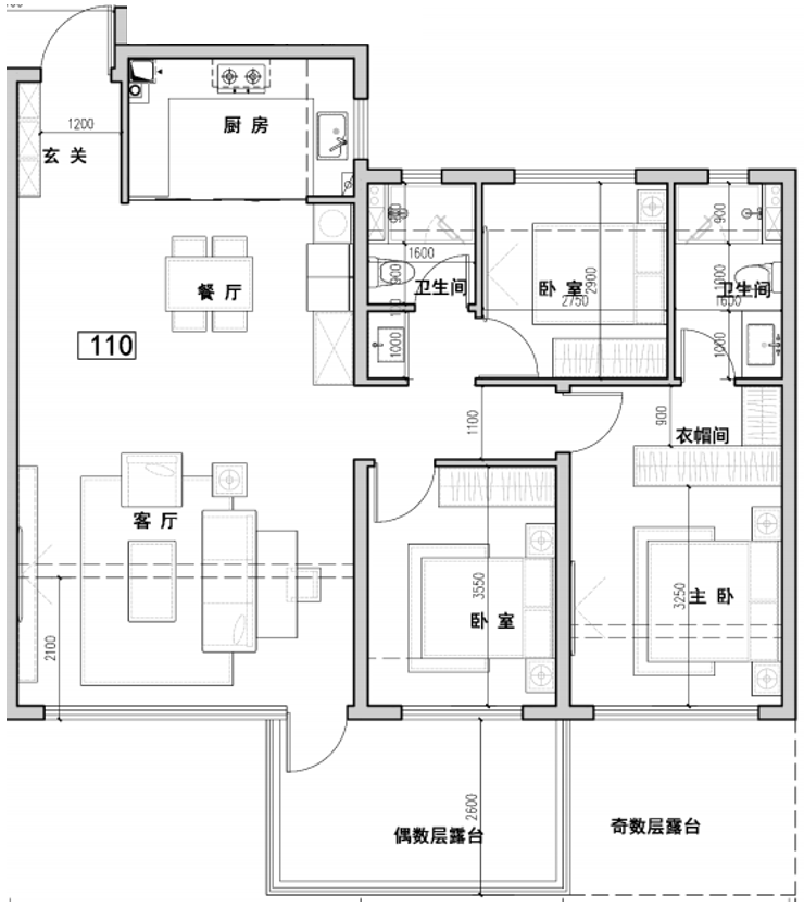 奇偶错层,大进深露台