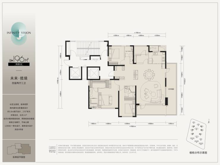 户型6.单套面积195.03㎡,四室二厅三卫户型26套;