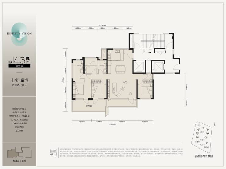 户型3.单套面积143.53㎡,四室二厅二卫户型15套;