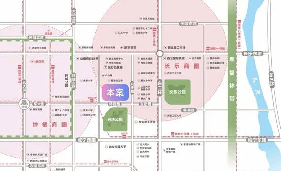 项目毗邻环城东路、东二环两大主环线;地铁1、3、4、6号地铁线环绕,距离地铁3号线长乐公园站约800米;地铁6号线长乐门站距离项目约900米;地铁1号线康复路站距离项目约1000米;地铁4号线大差市站距离项目约2000米;兴庆宫园北门站、兴庆路互助路口站包含:8路 ; 15路 ; 27路 ; 37路 ; 43路 ; 102路 ; 203路 ; 228路 ; 240路 ; 300路 ; 401路 ; 408路 ; 410路 ; 517路 ; 602路 ; 709路等近二十条公交线路,从交通出行而言,区域内路网四通八达。
