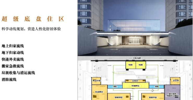 超级底盘住区:万科结合丰富的成熟社区经验,精研实际生活场景,整理出强大的地上归家流线、地下归家流线、外卖快递流线、搬家急救流线、垃圾清运流线、消防流线共6大社区流线,解决日常生活中经常遇到的痛点,为住区加持强大的超级底盘。